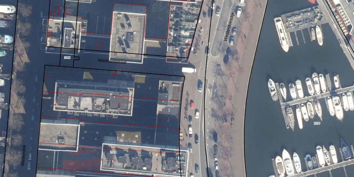 Het perceel waarop Westerdoksdijk 169 staat heeft een oppervlakte van 7987 m². Dit is een zeer groot perceel. De perceeloppervlakte wordt geregistreerd door het Kadaster. Gedetailleerde informatie over de maten van dit perceel kunt u vinden in het rapport Kadastrale kaart met maatvoering van Westerdoksdijk 169.