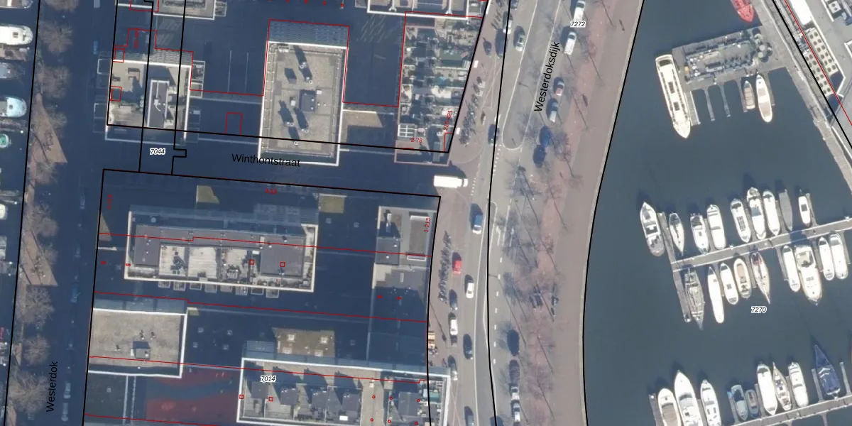 Het perceel waarop Westerdoksdijk 205 staat heeft een oppervlakte van 7987 m². Dit is een zeer groot perceel. De perceeloppervlakte wordt geregistreerd door het Kadaster. Gedetailleerde informatie over de maten van dit perceel kunt u vinden in het rapport Kadastrale kaart met maatvoering van Westerdoksdijk 205.