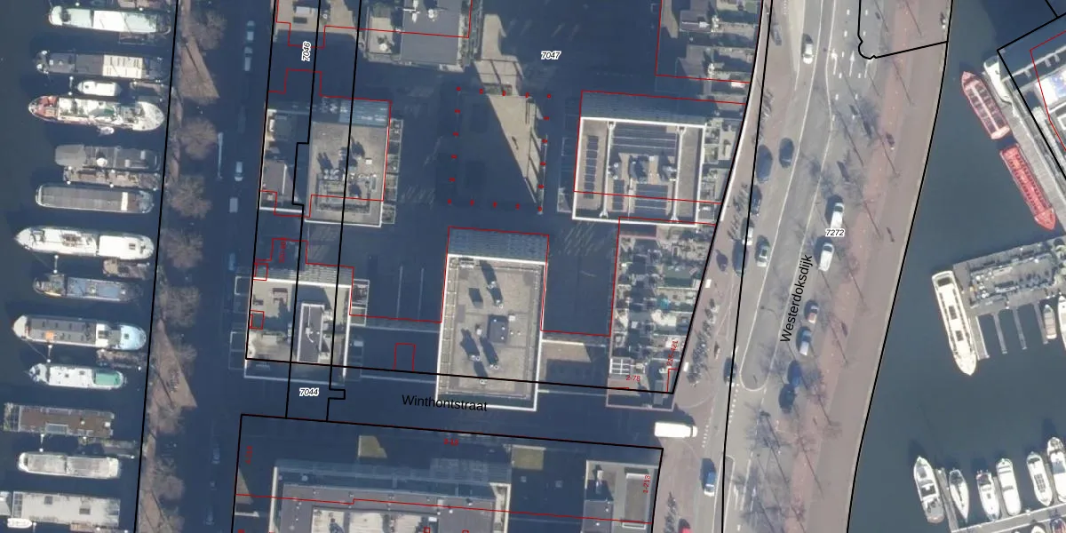 Het perceel waarop Westerdoksdijk 249 staat heeft een oppervlakte van 8189 m². Dit is een zeer groot perceel. De perceeloppervlakte wordt geregistreerd door het Kadaster. Gedetailleerde informatie over de maten van dit perceel kunt u vinden in het rapport Kadastrale kaart met maatvoering van Westerdoksdijk 249.