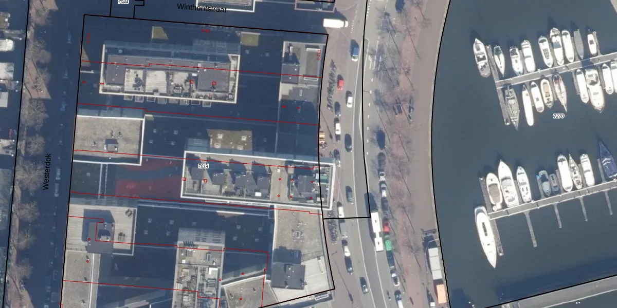 Het perceel waarop Westerdoksdijk 47 staat heeft een oppervlakte van 7987 m². Dit is een zeer groot perceel. De perceeloppervlakte wordt geregistreerd door het Kadaster. Gedetailleerde informatie over de maten van dit perceel kunt u vinden in het rapport Kadastrale kaart met maatvoering van Westerdoksdijk 47.