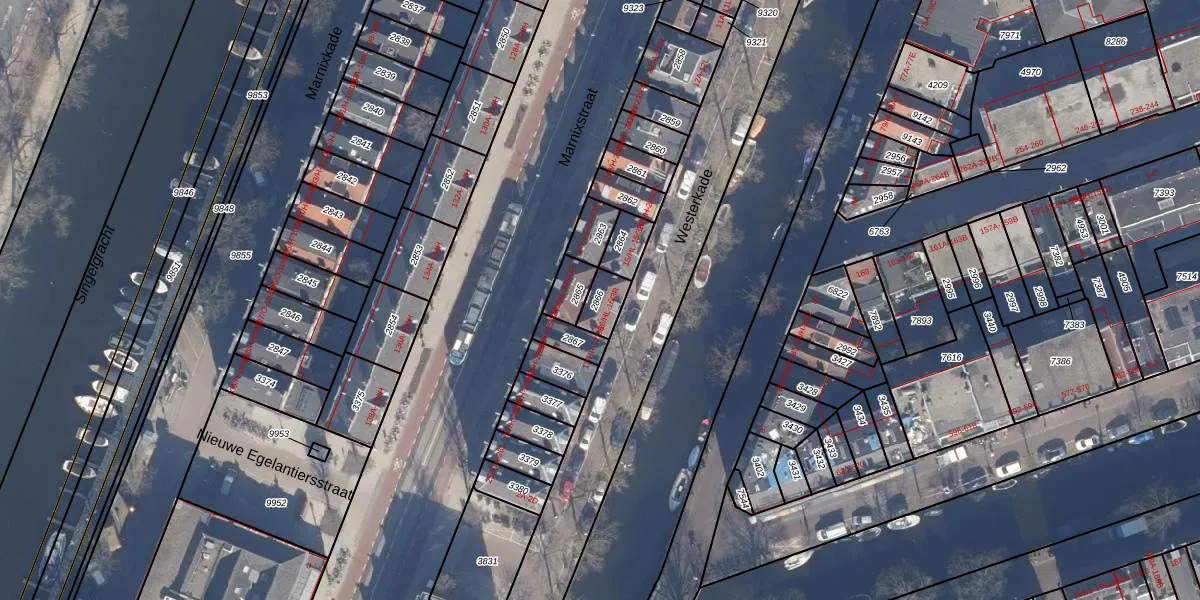Het adres is gelegen op perceel 2866 in de sectie L en de kadastrale gemeente Amsterdam. De kadastrale aanduiding is aldus ASD08-L-2866. De gemiddelde perceelgrootte in Amsterdam is 202,23 m². Dit perceel is kleiner: de perceeloppervlakte bedraagt 63 m². Het grootste perceel in de kadastrale gemeente is 3,3 ha. Het kleinste perceel heeft een oppervlakte van 0 m². Op het perceel liggen in totaal 8 adressen. De huidige grenzen van het perceel zijn digitaal in de Basisregistratie Kadaster (BRK) geregistreerd op 31-01-2007.
