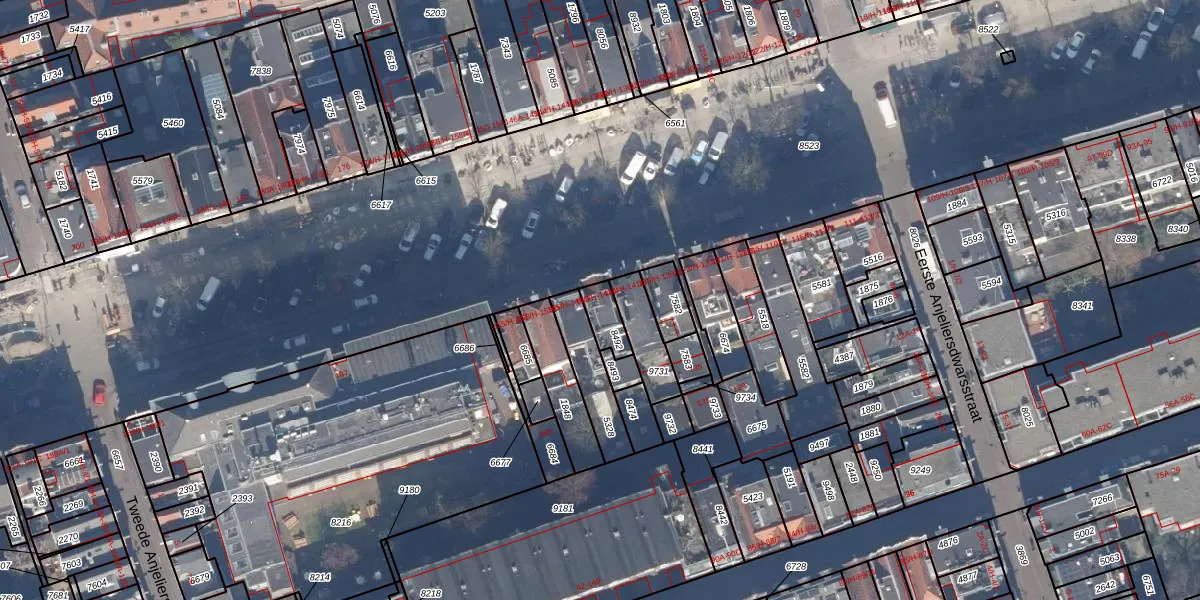 Het adres is gelegen op perceel 8492 in de sectie L en de kadastrale gemeente Amsterdam. De kadastrale aanduiding is aldus ASD08-L-8492. Het perceel is 63 m² groot. Dat is kleiner dan de gemiddelde perceeloppervlakte in Amsterdam, dat op 202,23 m² ligt. De grootste perceeloppervlakte in de kadastrale gemeente is 3,3 ha. De kleinste oppervlakte bedraagt 0 m². Op het perceel zijn 3 adressen aanwezig. De huidige grenzen van het perceel zijn digitaal in de Basisregistratie Kadaster (BRK) geregistreerd op 24-01-2007.