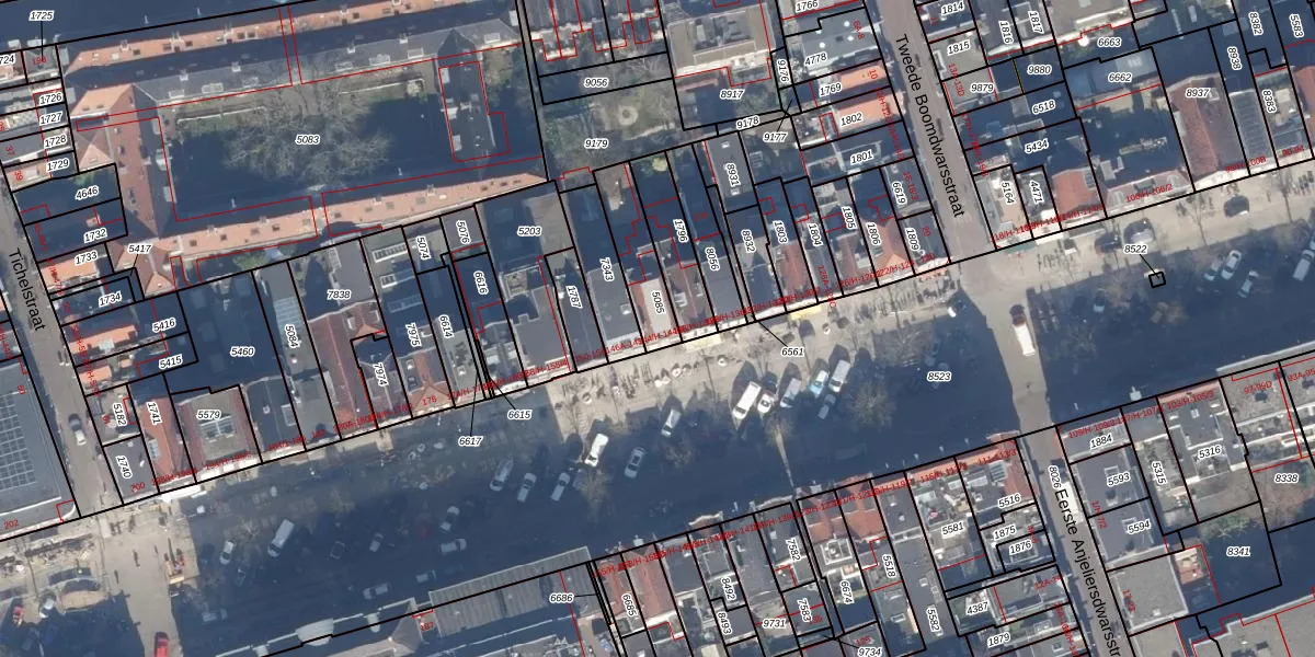 Het adres is gelegen op perceel 5085 in de sectie L en de kadastrale gemeente Amsterdam. De kadastrale aanduiding is aldus ASD08-L-5085. Het perceel is 162 m² groot. Dat is kleiner dan de gemiddelde perceeloppervlakte in Amsterdam, dat op 202,23 m² ligt. De grootste perceeloppervlakte in de kadastrale gemeente is 3,3 ha. De kleinste oppervlakte bedraagt 0 m². Op het perceel zijn 4 adressen aanwezig. De huidige grenzen van het perceel zijn digitaal in de Basisregistratie Kadaster (BRK) geregistreerd op 31-01-2007.