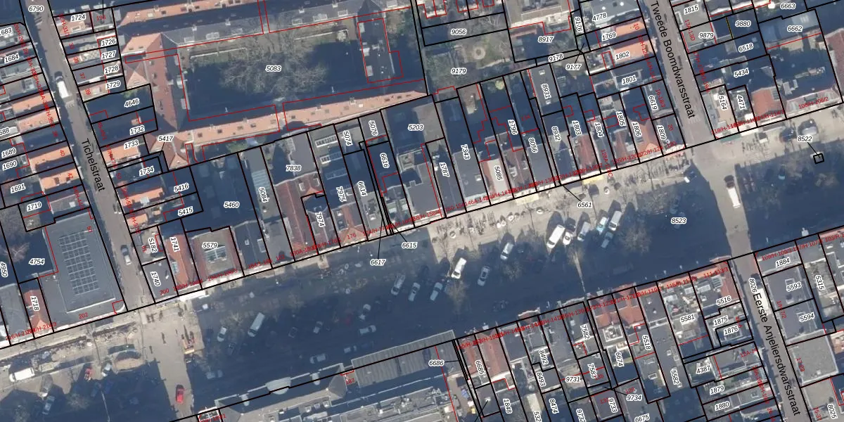 Het adres is gelegen op perceel 5203 in de sectie L en de kadastrale gemeente Amsterdam. De kadastrale aanduiding is aldus ASD08-L-5203. De oppervlakte van het perceel is 280 m². Dat is groter dan gemiddeld in Amsterdam, waar de gemiddelde perceeloppervlakte op 202,23 m² ligt. De grootste perceeloppervlakte in de kadastrale gemeente is 3,3 ha. De kleinste oppervlakte bedraagt 0 m². Er zijn 5 adressen aanwezig op het perceel. De laatste wijziging in het de Basisregistratie Kadaster (BRK) was op 31-01-2007.