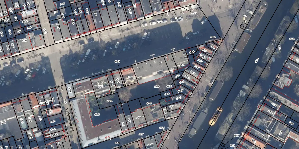 Het adres ligt op het perceel ASD08-L-8646, dat zich in de kadastrale gemeente Amsterdam bevindt. Het perceel is met 692 m² relatief groot. Het gemiddelde ligt in de kadastrale gemeente Amsterdam op 202,23 m². Het kleinste perceel in de kadastrale gemeente is 0 m² groot. De grootste perceeloppervlakte is 3,3 ha. Op het perceel zijn 13 adressen aanwezig. De huidige grenzen van het perceel zijn digitaal in de Basisregistratie Kadaster (BRK) geregistreerd op 24-01-2007.