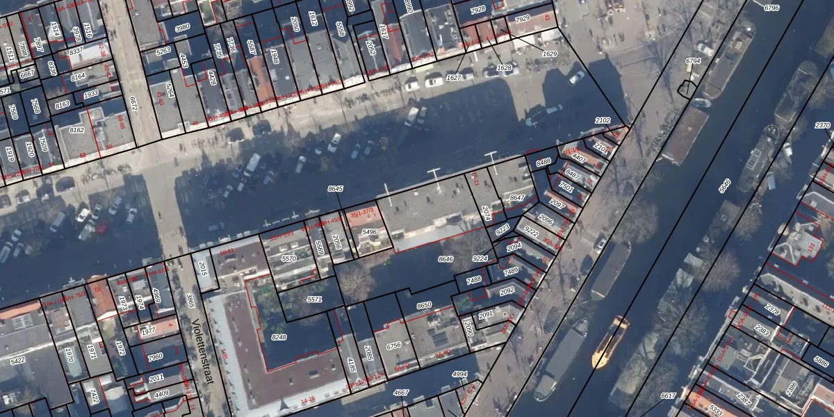 Het adres ligt op het perceel ASD08-L-8646, dat zich in de kadastrale gemeente Amsterdam bevindt. Het perceel is met 692 m² relatief groot. Het gemiddelde ligt in de kadastrale gemeente Amsterdam op 202,23 m². Het kleinste perceel in de kadastrale gemeente is 0 m² groot. De grootste perceeloppervlakte is 3,3 ha. Op het perceel zijn 13 adressen aanwezig. De huidige grenzen van het perceel zijn digitaal in de Basisregistratie Kadaster (BRK) geregistreerd op 24-01-2007.
