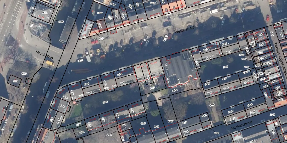 Het perceel waarop Westerstraat 323 staat heeft een oppervlakte van 80 m². Dit is een klein perceel. De perceeloppervlakte wordt geregistreerd door het Kadaster. Gedetailleerde informatie over de maten van dit perceel kunt u vinden in het rapport Kadastrale kaart met maatvoering van Westerstraat 323.