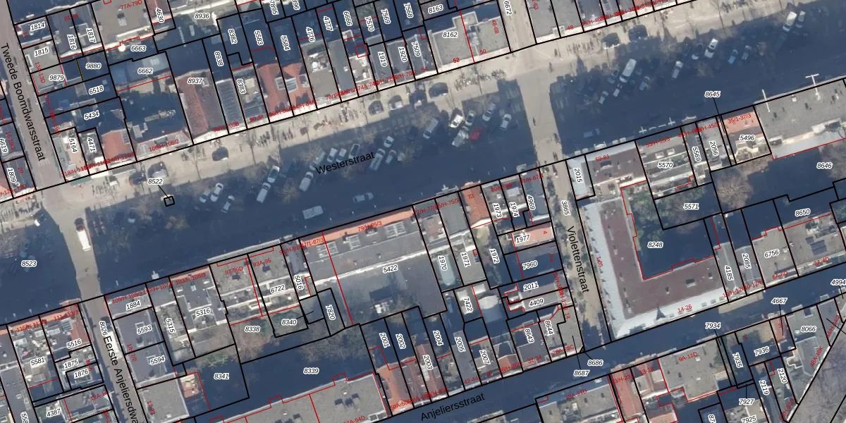 Het adres is gelegen op perceel 1970 in de sectie L en de kadastrale gemeente Amsterdam. De kadastrale aanduiding is aldus ASD08-L-1970. Het perceel is 124 m² groot. Dat is kleiner dan de gemiddelde perceeloppervlakte in Amsterdam, dat op 202,23 m² ligt. Het grootste perceel in de kadastrale gemeente is 3,3 ha. Het kleinste perceel heeft een oppervlakte van 0 m². Op het perceel zijn 6 adressen aanwezig. De laatste wijziging in het de Basisregistratie Kadaster (BRK) was op 24-01-2007.