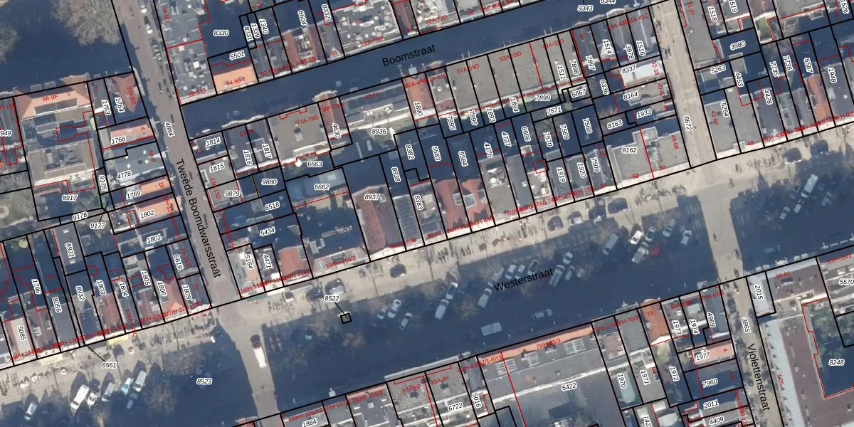 Het perceel waarop Westerstraat 94 staat heeft een oppervlakte van 96 m². Dit is een klein perceel. De perceeloppervlakte wordt geregistreerd door het Kadaster. Gedetailleerde informatie over de maten van dit perceel kunt u vinden in het rapport Kadastrale kaart met maatvoering van Westerstraat 94.