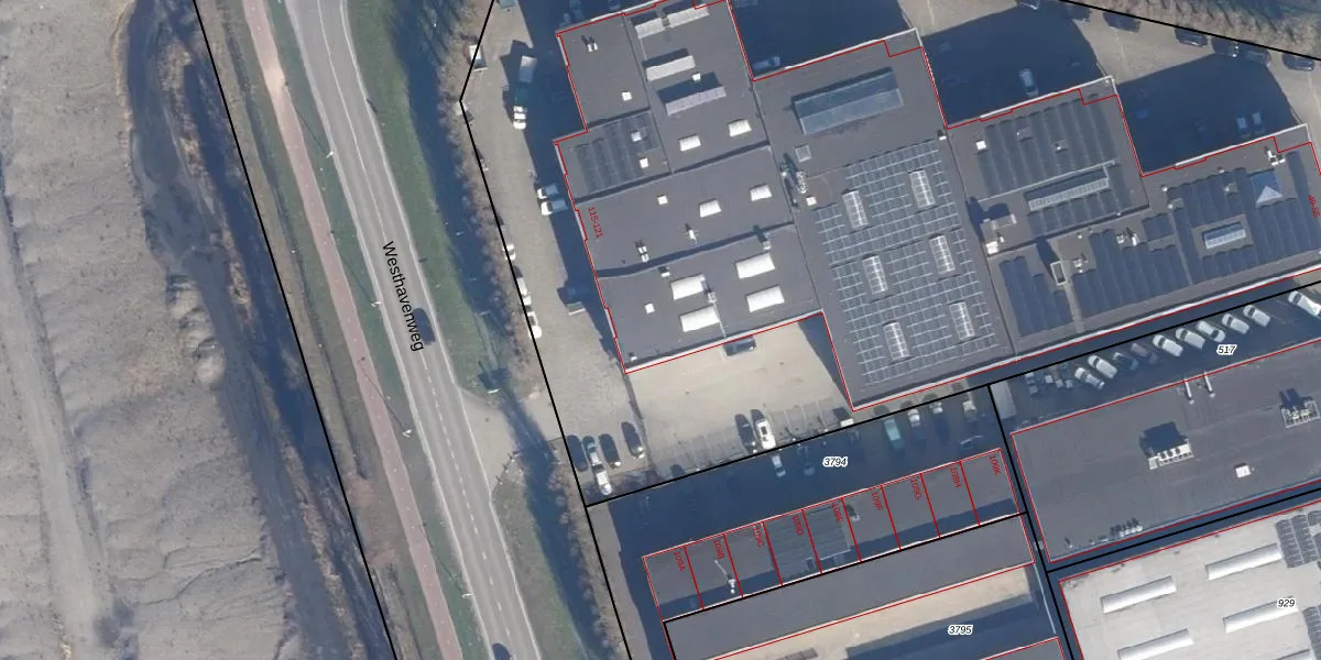 Het perceel waarop Westhavenweg 115 staat heeft een oppervlakte van 8314 m². Dit is een zeer groot perceel. De perceeloppervlakte wordt geregistreerd door het Kadaster. Gedetailleerde informatie over de maten van dit perceel kunt u vinden in het rapport Kadastrale kaart met maatvoering van Westhavenweg 115.