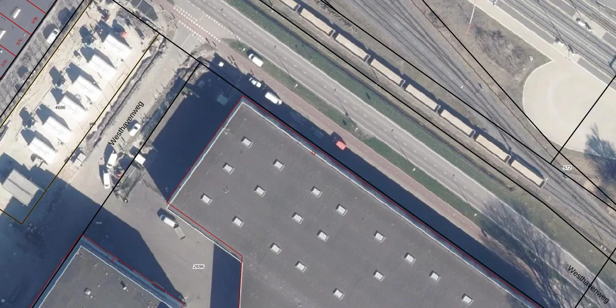 Het perceel waarop Westhavenweg 53 staat heeft een oppervlakte van 1,3 ha. Dit is een zeer groot perceel. De perceeloppervlakte wordt geregistreerd door het Kadaster. Gedetailleerde informatie over de maten van dit perceel kunt u vinden in het rapport Kadastrale kaart met maatvoering van Westhavenweg 53.