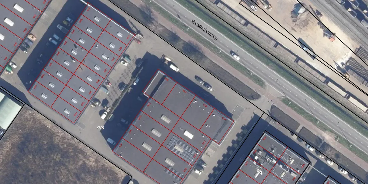 Het perceel waarop Westhavenweg 62-A staat heeft een oppervlakte van 1,2 ha. Dit is een zeer groot perceel. De perceeloppervlakte wordt geregistreerd door het Kadaster. Gedetailleerde informatie over de maten van dit perceel kunt u vinden in het rapport Kadastrale kaart met maatvoering van Westhavenweg 62-A.