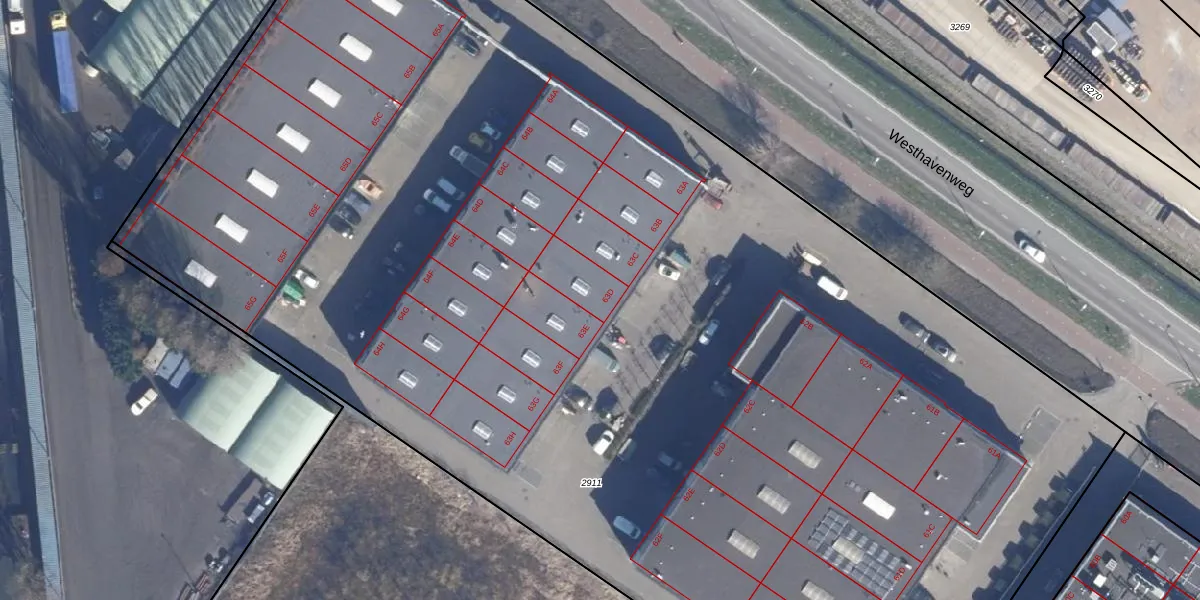Het perceel waarop Westhavenweg 63-D staat heeft een oppervlakte van 1,2 ha. Dit is een zeer groot perceel. De perceeloppervlakte wordt geregistreerd door het Kadaster. Gedetailleerde informatie over de maten van dit perceel kunt u vinden in het rapport Kadastrale kaart met maatvoering van Westhavenweg 63-D.