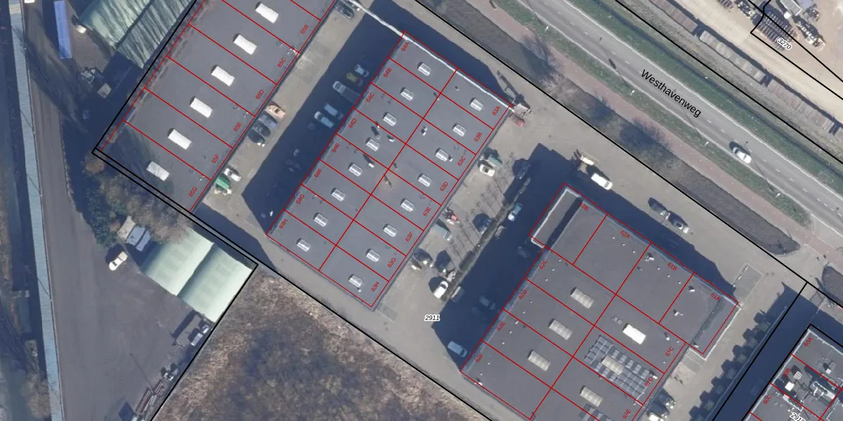 Het perceel waarop Westhavenweg 63-E staat heeft een oppervlakte van 1,2 ha. Dit is een zeer groot perceel. De perceeloppervlakte wordt geregistreerd door het Kadaster. Gedetailleerde informatie over de maten van dit perceel kunt u vinden in het rapport Kadastrale kaart met maatvoering van Westhavenweg 63-E.