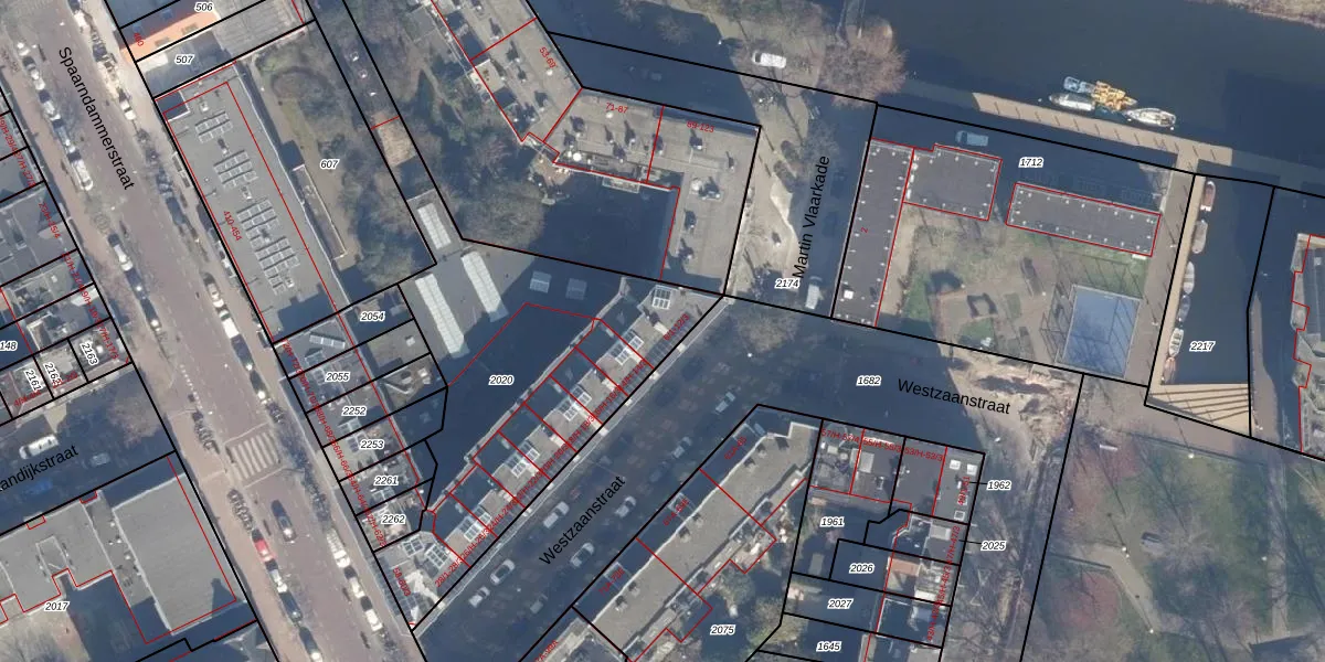 Het adres is gelegen op perceel 2020 in de sectie X en de kadastrale gemeente Amsterdam. De kadastrale aanduiding is aldus ASD20-X-2020. De gemiddelde perceeloppervlakte in de kadastrale gemeente Amsterdam is 466,51 m². Dit perceel is met zijn 1566 m² dus groter dan gemiddeld. Het grootste perceel in de kadastrale gemeente is 3,6 ha. Het kleinste perceel heeft een oppervlakte van 0 m². Er zijn 42 adressen aanwezig op het perceel. De huidige grenzen van het perceel zijn digitaal in de Basisregistratie Kadaster (BRK) geregistreerd op 29-11-2007.