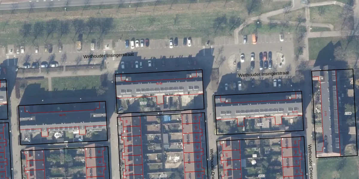Het perceel waarop Wethouder Insingerstraat 46 staat heeft een oppervlakte van 1068 m². Dit is een zeer groot perceel. De perceeloppervlakte wordt geregistreerd door het Kadaster. Gedetailleerde informatie over de maten van dit perceel kunt u vinden in het rapport Kadastrale kaart met maatvoering van Wethouder Insingerstraat 46.