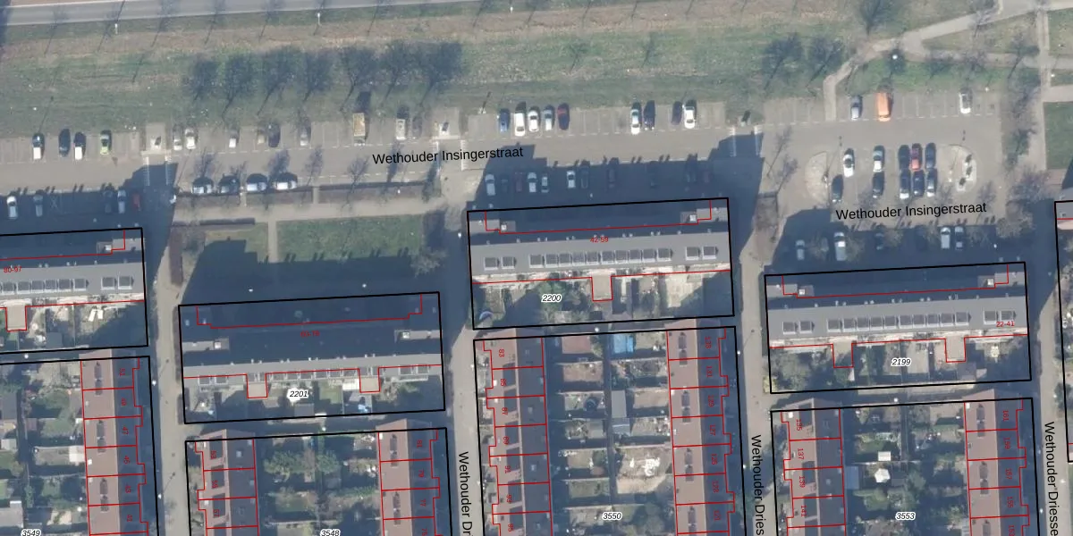 Het perceel waarop Wethouder Insingerstraat 56 staat heeft een oppervlakte van 1068 m². Dit is een zeer groot perceel. De perceeloppervlakte wordt geregistreerd door het Kadaster. Gedetailleerde informatie over de maten van dit perceel kunt u vinden in het rapport Kadastrale kaart met maatvoering van Wethouder Insingerstraat 56.