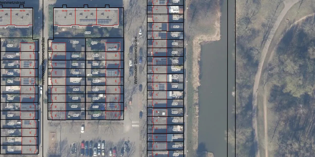 Wethouder Steinmetzstraat 21 is gelegen op kadastraal perceel WPK02L8426. Deze kadastrale aanduiding is uniek en wordt gebruikt door het Kadaster om eigendomsrechten en andere zakelijke rechten vast te leggen. Het perceel maakt onderdeel uit van de kadastrale gemeente Weesperkarspel.