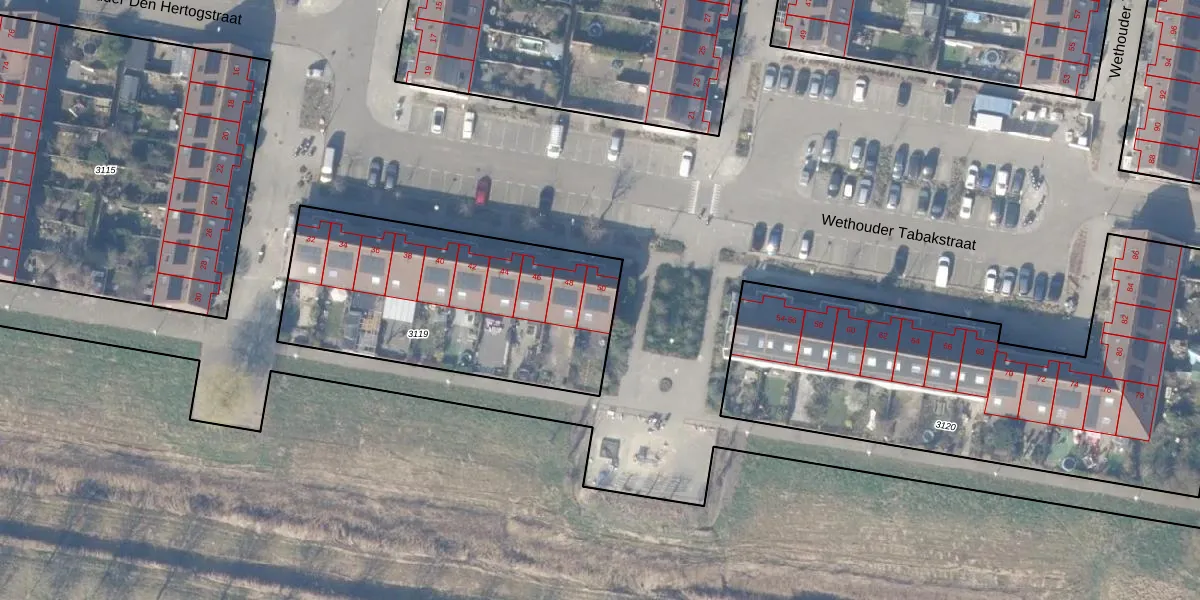 Het perceel waarop Wethouder Tabakstraat 50 staat heeft een oppervlakte van 1244 m². Dit is een zeer groot perceel. De perceeloppervlakte wordt geregistreerd door het Kadaster. Gedetailleerde informatie over de maten van dit perceel kunt u vinden in het rapport Kadastrale kaart met maatvoering van Wethouder Tabakstraat 50.