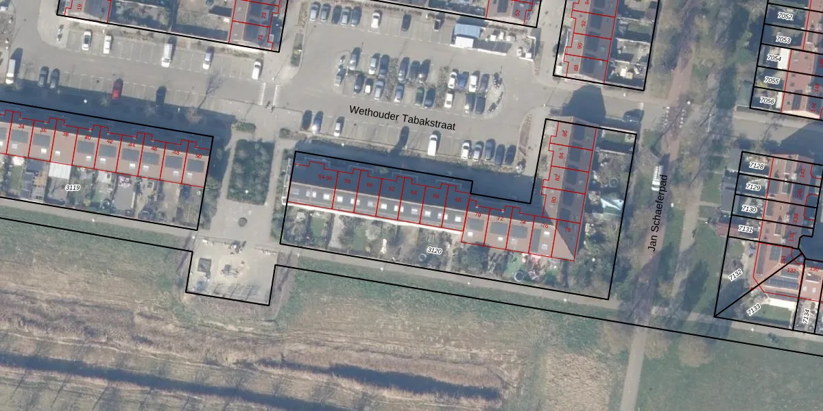 Het perceel waarop Wethouder Tabakstraat 64 staat heeft een oppervlakte van 2193 m². Dit is een zeer groot perceel. De perceeloppervlakte wordt geregistreerd door het Kadaster. Gedetailleerde informatie over de maten van dit perceel kunt u vinden in het rapport Kadastrale kaart met maatvoering van Wethouder Tabakstraat 64.