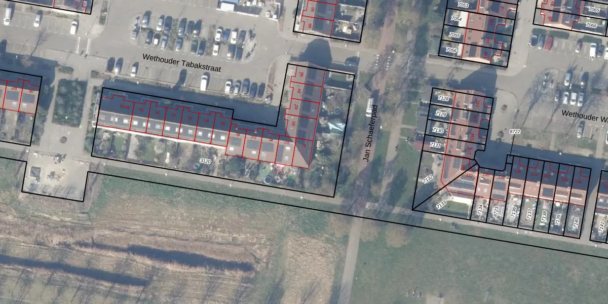 Het perceel waarop Wethouder Tabakstraat 78 staat heeft een oppervlakte van 2193 m². Dit is een zeer groot perceel. De perceeloppervlakte wordt geregistreerd door het Kadaster. Gedetailleerde informatie over de maten van dit perceel kunt u vinden in het rapport Kadastrale kaart met maatvoering van Wethouder Tabakstraat 78.