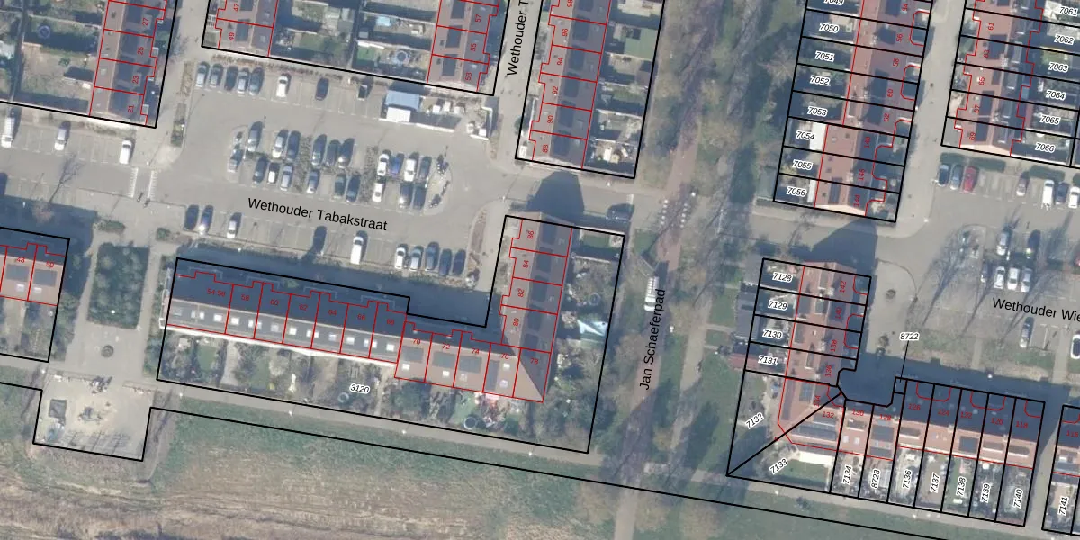 Het perceel waarop Wethouder Tabakstraat 84 staat heeft een oppervlakte van 2193 m². Dit is een zeer groot perceel. De perceeloppervlakte wordt geregistreerd door het Kadaster. Gedetailleerde informatie over de maten van dit perceel kunt u vinden in het rapport Kadastrale kaart met maatvoering van Wethouder Tabakstraat 84.