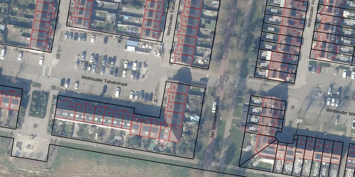 Het perceel waarop Wethouder Tabakstraat 86 staat heeft een oppervlakte van 2193 m². Dit is een zeer groot perceel. De perceeloppervlakte wordt geregistreerd door het Kadaster. Gedetailleerde informatie over de maten van dit perceel kunt u vinden in het rapport Kadastrale kaart met maatvoering van Wethouder Tabakstraat 86.