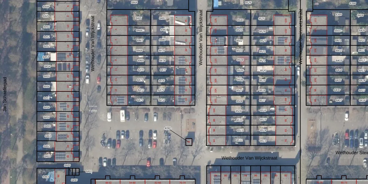 Gebruik de zoekbalk of klik op een perceel voor informatie over de adressen binnen dit perceel.