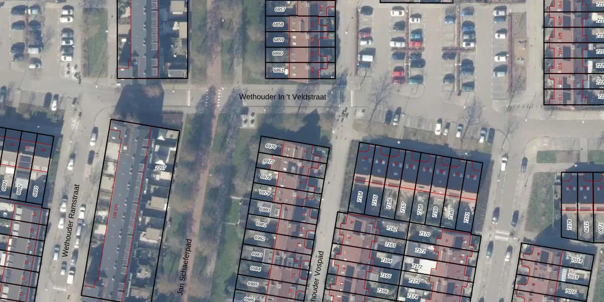 Gebruik de zoekbalk of klik op een perceel voor informatie over de adressen binnen dit perceel.
