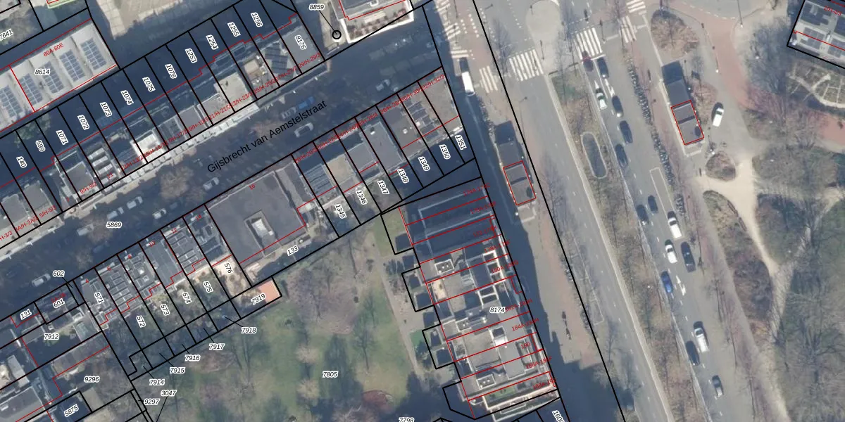 Het adres is gelegen op perceel 8174 in de sectie W en de kadastrale gemeente Amsterdam. De kadastrale aanduiding is aldus ASD19-W-8174. Het perceel is 1306 m² groot. Dat is kleiner dan de gemiddelde perceeloppervlakte in Amsterdam, dat op 1563,05 m² ligt. De grootste perceeloppervlakte in de kadastrale gemeente is 17,9 ha. De kleinste oppervlakte bedraagt 0 m². Op het perceel zijn 52 adressen aanwezig. De huidige grenzen van het perceel zijn digitaal in de Basisregistratie Kadaster (BRK) geregistreerd op 14-11-2006.