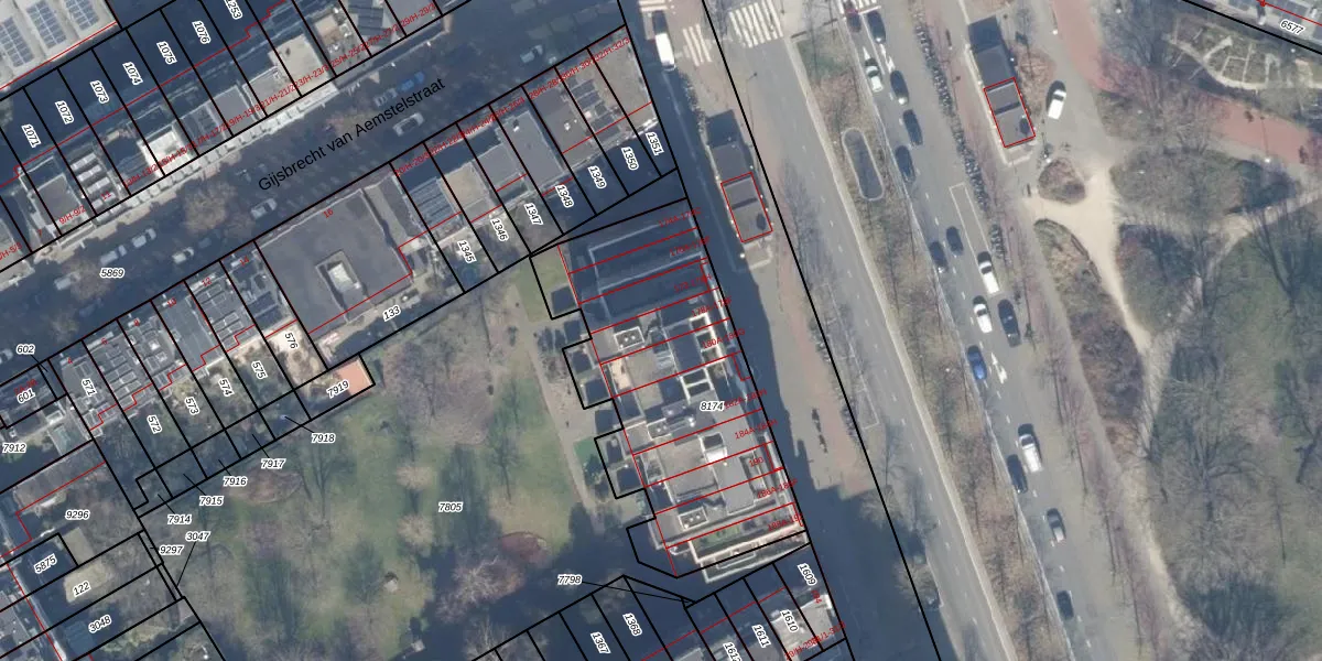 Het adres is gelegen op perceel 8174 in de sectie W en de kadastrale gemeente Amsterdam. De kadastrale aanduiding is aldus ASD19-W-8174. Het perceel is 1306 m² groot. Dat is kleiner dan de gemiddelde perceeloppervlakte in Amsterdam, dat op 1563,61 m² ligt. De grootste perceeloppervlakte in de kadastrale gemeente is 17,9 ha. De kleinste oppervlakte bedraagt 0 m². Op het perceel liggen in totaal 52 adressen. In de Basisregistratie Kadaster (BRK) werden de grenzen van het perceel geregistreerd op 14-11-2006.