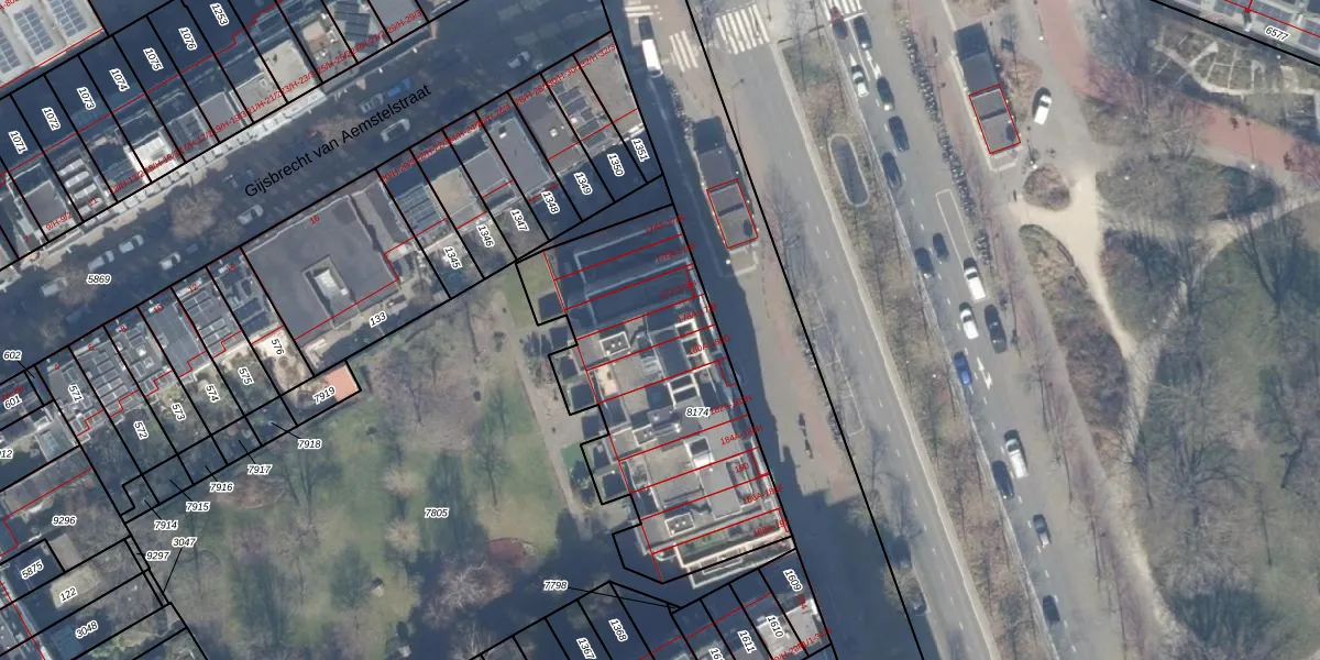 Het adres is gelegen op perceel 8174 in de sectie W en de kadastrale gemeente Amsterdam. De kadastrale aanduiding is aldus ASD19-W-8174. Het perceel is 1306 m² groot. Dat is kleiner dan de gemiddelde perceeloppervlakte in Amsterdam, dat op 1563,61 m² ligt. De grootste perceeloppervlakte in de kadastrale gemeente is 17,9 ha. De kleinste oppervlakte bedraagt 0 m². Op het perceel liggen in totaal 52 adressen. De laatste wijziging in het de Basisregistratie Kadaster (BRK) was op 14-11-2006.