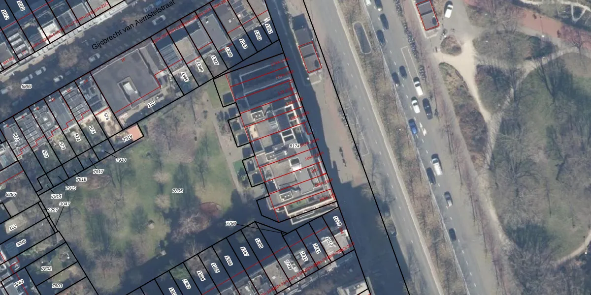 Het adres is gelegen op perceel 8174 in de sectie W en de kadastrale gemeente Amsterdam. De kadastrale aanduiding is aldus ASD19-W-8174. Het perceel is kleiner dan gemiddeld in Amsterdam. Het perceel is 1306 m² groot, terwijl het gemiddelde ligt op 1563,05 m². De grootste perceeloppervlakte in de kadastrale gemeente is 17,9 ha. De kleinste oppervlakte bedraagt 0 m². Er zijn 52 adressen aanwezig op het perceel. De laatste wijziging in het de Basisregistratie Kadaster (BRK) was op 14-11-2006.