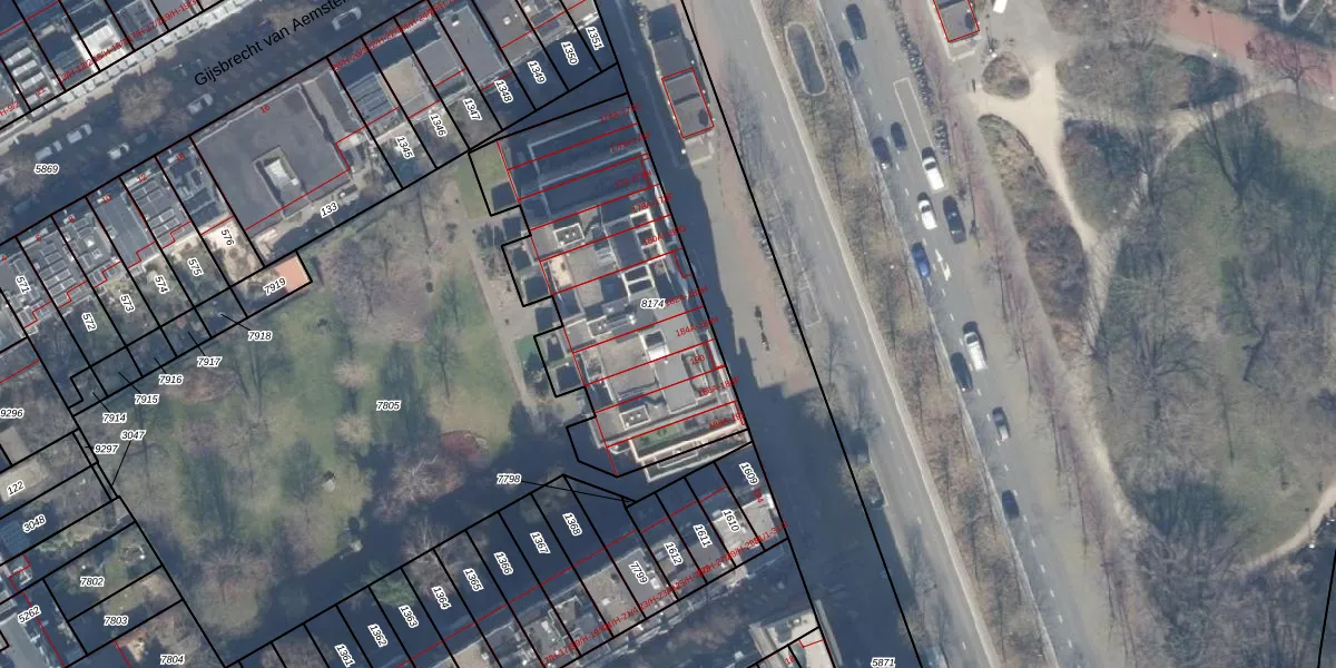 Het perceel waarop Wibautstraat 184-F staat heeft een oppervlakte van 1306 m². Dit is een zeer groot perceel. De perceeloppervlakte wordt geregistreerd door het Kadaster. Gedetailleerde informatie over de maten van dit perceel kunt u vinden in het rapport Kadastrale kaart met maatvoering van Wibautstraat 184-F.