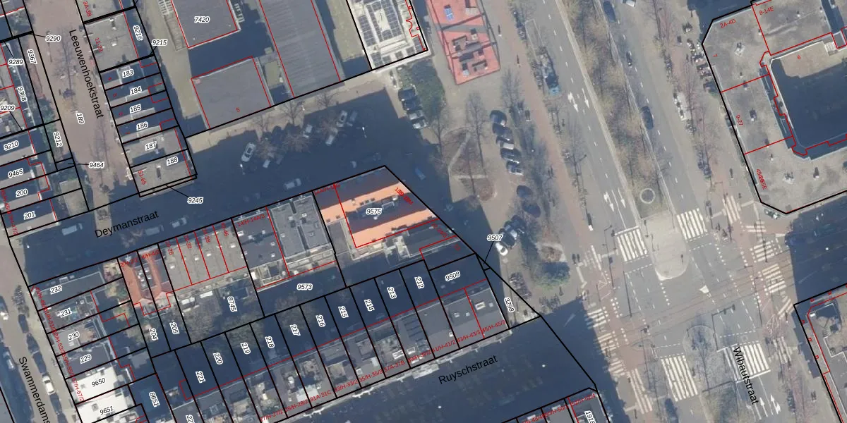 Het perceel waarop Wibautstraat 22 staat heeft een oppervlakte van 602 m². Dit is een groot perceel. De perceeloppervlakte wordt geregistreerd door het Kadaster. Gedetailleerde informatie over de maten van dit perceel kunt u vinden in het rapport Kadastrale kaart met maatvoering van Wibautstraat 22.