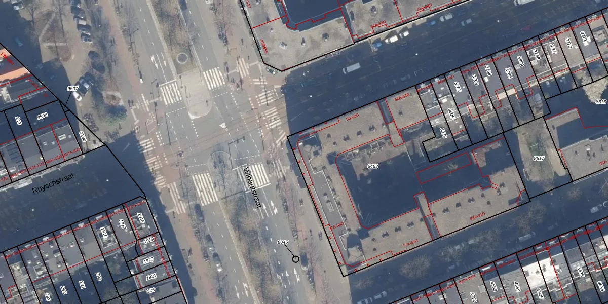 Het perceel waarop Wibautstraat 31-A staat heeft een oppervlakte van 2738 m². Dit is een zeer groot perceel. De perceeloppervlakte wordt geregistreerd door het Kadaster. Gedetailleerde informatie over de maten van dit perceel kunt u vinden in het rapport Kadastrale kaart met maatvoering van Wibautstraat 31-A.