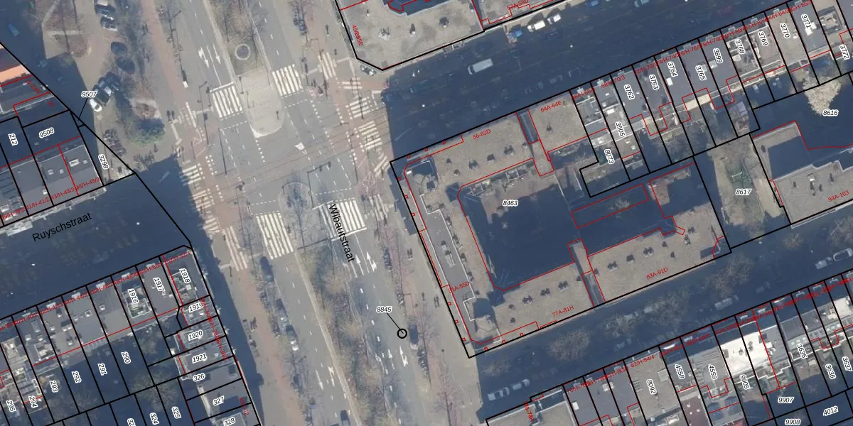 Het adres is gelegen op perceel 8463 in de sectie S en de kadastrale gemeente Amsterdam. De kadastrale aanduiding is aldus ASD15-S-8463. Het perceel is met 2738 m² relatief groot. Het gemiddelde ligt in de kadastrale gemeente Amsterdam op 537,06 m². Het grootste perceel in de kadastrale gemeente is 14,5 ha. Het kleinste perceel heeft een oppervlakte van 0 m². Op het perceel zijn 88 adressen aanwezig. De huidige grenzen van het perceel zijn digitaal in de Basisregistratie Kadaster (BRK) geregistreerd op 30-11-2006.