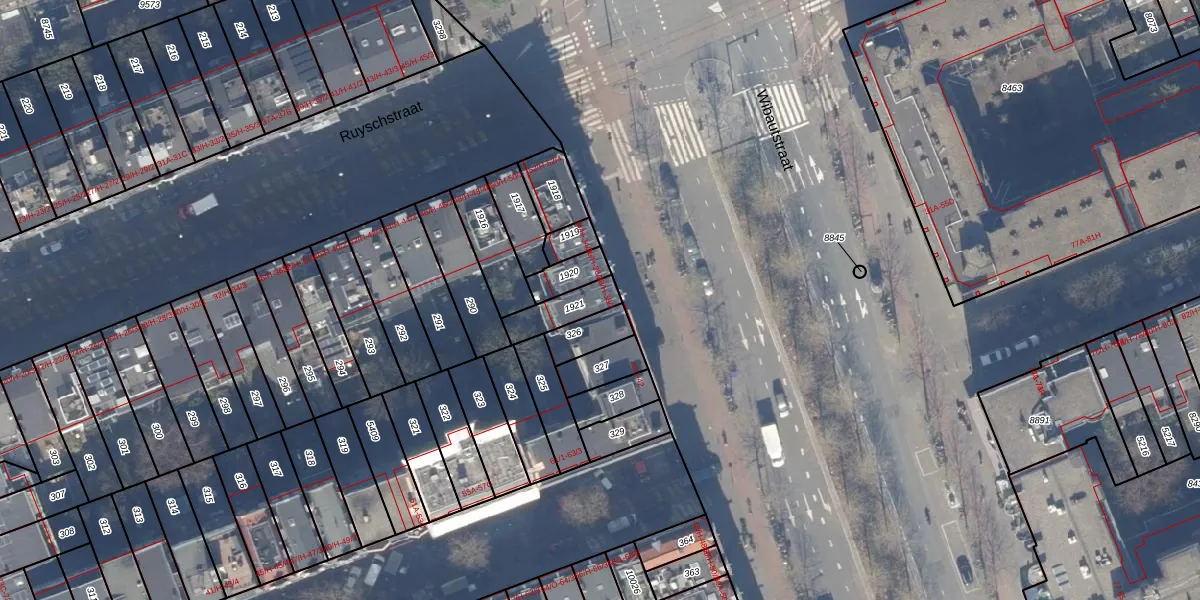 Het adres is gelegen op perceel 1921 in de sectie S en de kadastrale gemeente Amsterdam. De kadastrale aanduiding is aldus ASD15-S-1921. De gemiddelde perceelgrootte in Amsterdam is 537,06 m². Dit perceel is kleiner: de perceeloppervlakte bedraagt 101 m². Het grootste perceel in de kadastrale gemeente is 14,5 ha. Het kleinste perceel heeft een oppervlakte van 0 m². Op het perceel liggen in totaal 4 adressen. De laatste wijziging in het de Basisregistratie Kadaster (BRK) was op 05-12-2006.