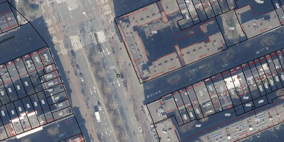 Het perceel waarop Wibautstraat 53-B staat heeft een oppervlakte van 2738 m². Dit is een zeer groot perceel. De perceeloppervlakte wordt geregistreerd door het Kadaster. Gedetailleerde informatie over de maten van dit perceel kunt u vinden in het rapport Kadastrale kaart met maatvoering van Wibautstraat 53-B.