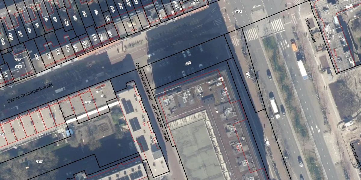Het perceel waarop Wibautstraat 66-B staat heeft een oppervlakte van 3835 m². Dit is een zeer groot perceel. De perceeloppervlakte wordt geregistreerd door het Kadaster. Gedetailleerde informatie over de maten van dit perceel kunt u vinden in het rapport Kadastrale kaart met maatvoering van Wibautstraat 66-B.