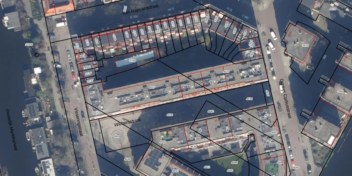 Het perceel waarop het adres ligt is ASD21-Y-4637. De afkorting 'ASD21' staat voor kadastrale gemeente Amsterdam. Het perceel is met 1300 m² relatief groot. Het gemiddelde ligt in de kadastrale gemeente Amsterdam op 770,38 m². De grootste perceeloppervlakte in de kadastrale gemeente is 7,1 ha. De kleinste oppervlakte bedraagt 0 m². Op het perceel liggen in totaal 33 adressen. De huidige grenzen van het perceel zijn digitaal in de Basisregistratie Kadaster (BRK) geregistreerd op 01-03-2011.