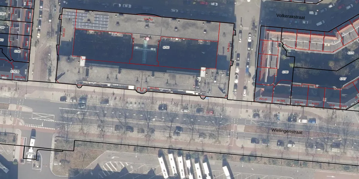 Het perceel waarop Wielingenstraat 26-R staat heeft een oppervlakte van 4070 m². Dit is een zeer groot perceel. De perceeloppervlakte wordt geregistreerd door het Kadaster. Gedetailleerde informatie over de maten van dit perceel kunt u vinden in het rapport Kadastrale kaart met maatvoering van Wielingenstraat 26-R.