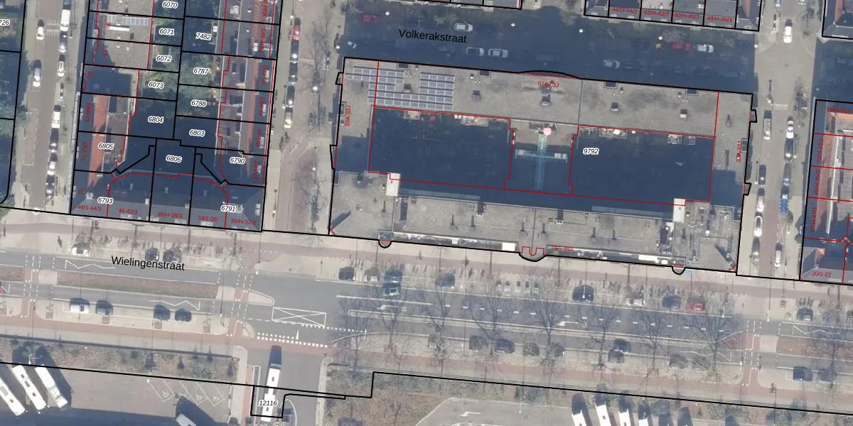 Het perceel waarop Wielingenstraat 28-L staat heeft een oppervlakte van 4070 m². Dit is een zeer groot perceel. De perceeloppervlakte wordt geregistreerd door het Kadaster. Gedetailleerde informatie over de maten van dit perceel kunt u vinden in het rapport Kadastrale kaart met maatvoering van Wielingenstraat 28-L.