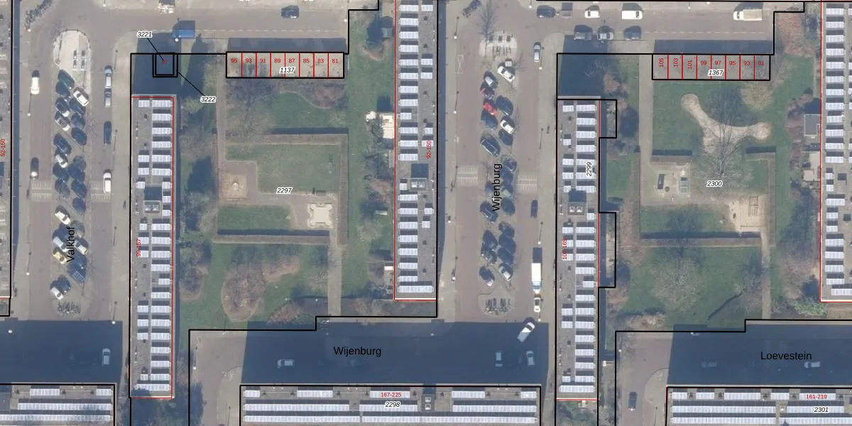 Het perceel waarop Wijenburg 130 staat heeft een oppervlakte van 5040 m². Dit is een zeer groot perceel. De perceeloppervlakte wordt geregistreerd door het Kadaster. Gedetailleerde informatie over de maten van dit perceel kunt u vinden in het rapport Kadastrale kaart met maatvoering van Wijenburg 130.