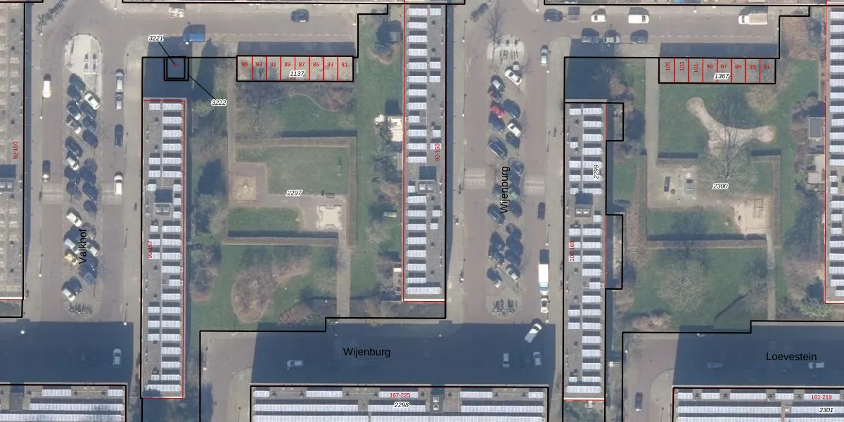 Het perceel waarop Wijenburg 132 staat heeft een oppervlakte van 5040 m². Dit is een zeer groot perceel. De perceeloppervlakte wordt geregistreerd door het Kadaster. Gedetailleerde informatie over de maten van dit perceel kunt u vinden in het rapport Kadastrale kaart met maatvoering van Wijenburg 132.