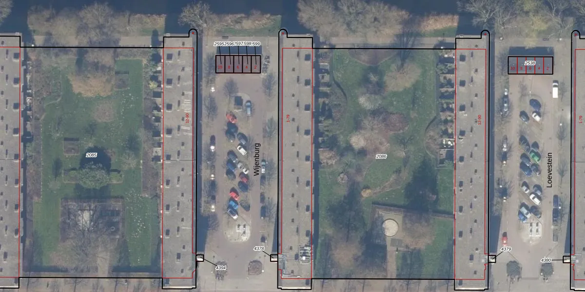 Het perceel waarop Wijenburg 15 staat heeft een oppervlakte van 5864 m². Dit is een zeer groot perceel. De perceeloppervlakte wordt geregistreerd door het Kadaster. Gedetailleerde informatie over de maten van dit perceel kunt u vinden in het rapport Kadastrale kaart met maatvoering van Wijenburg 15.