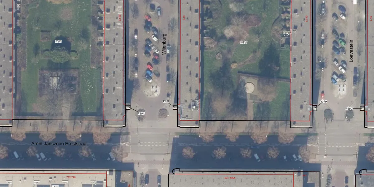 Het perceel waarop Wijenburg 77 staat heeft een oppervlakte van 5864 m². Dit is een zeer groot perceel. De perceeloppervlakte wordt geregistreerd door het Kadaster. Gedetailleerde informatie over de maten van dit perceel kunt u vinden in het rapport Kadastrale kaart met maatvoering van Wijenburg 77.
