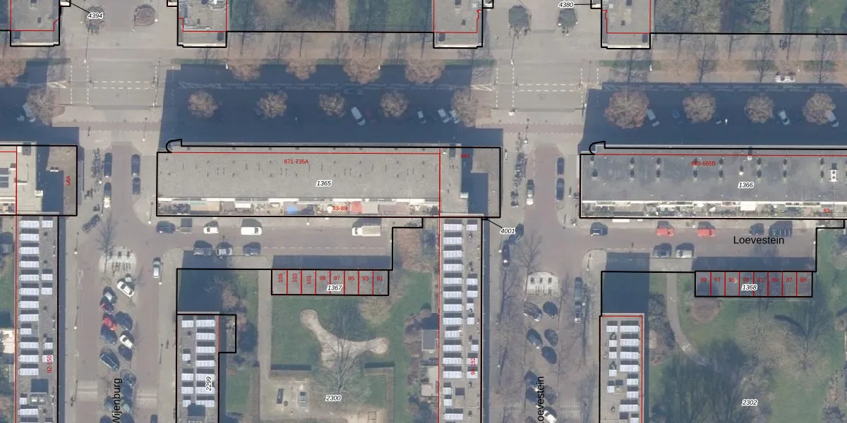 Het perceel waarop Wijenburg 89 staat heeft een oppervlakte van 1338 m². Dit is een zeer groot perceel. De perceeloppervlakte wordt geregistreerd door het Kadaster. Gedetailleerde informatie over de maten van dit perceel kunt u vinden in het rapport Kadastrale kaart met maatvoering van Wijenburg 89.