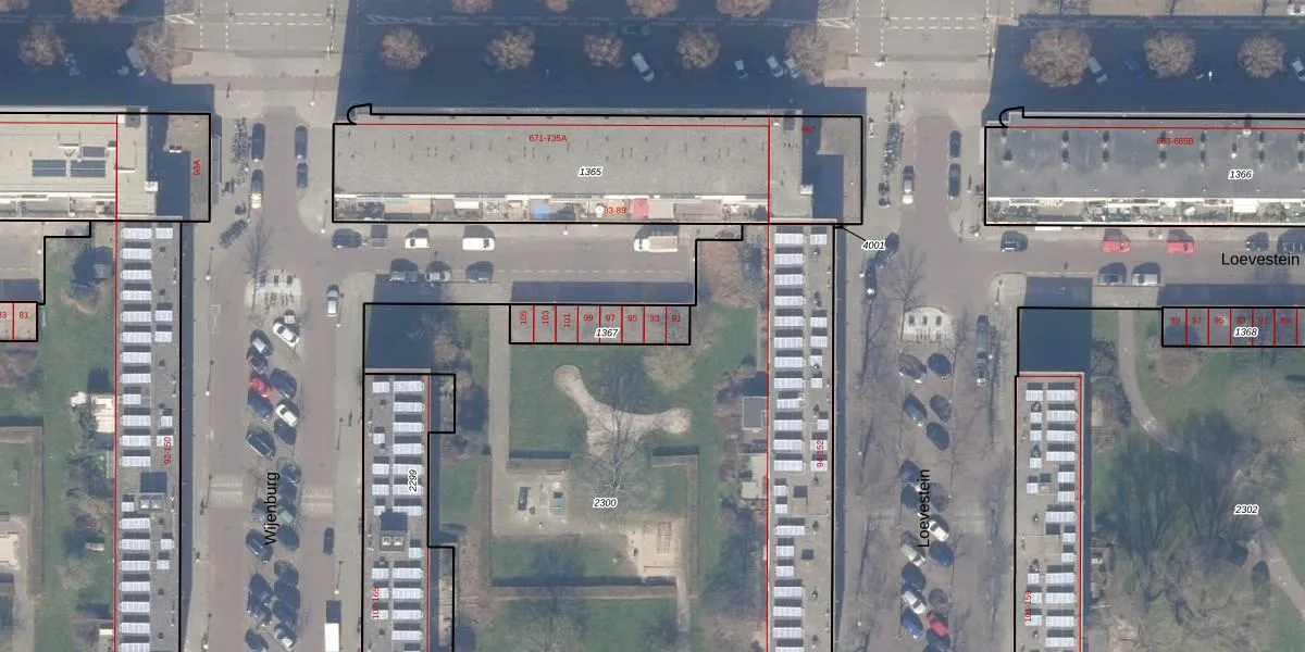 Het perceel waarop Wijenburg 93 staat heeft een oppervlakte van 166 m². Dit is een middelgroot perceel. De perceeloppervlakte wordt geregistreerd door het Kadaster. Gedetailleerde informatie over de maten van dit perceel kunt u vinden in het rapport Kadastrale kaart met maatvoering van Wijenburg 93.