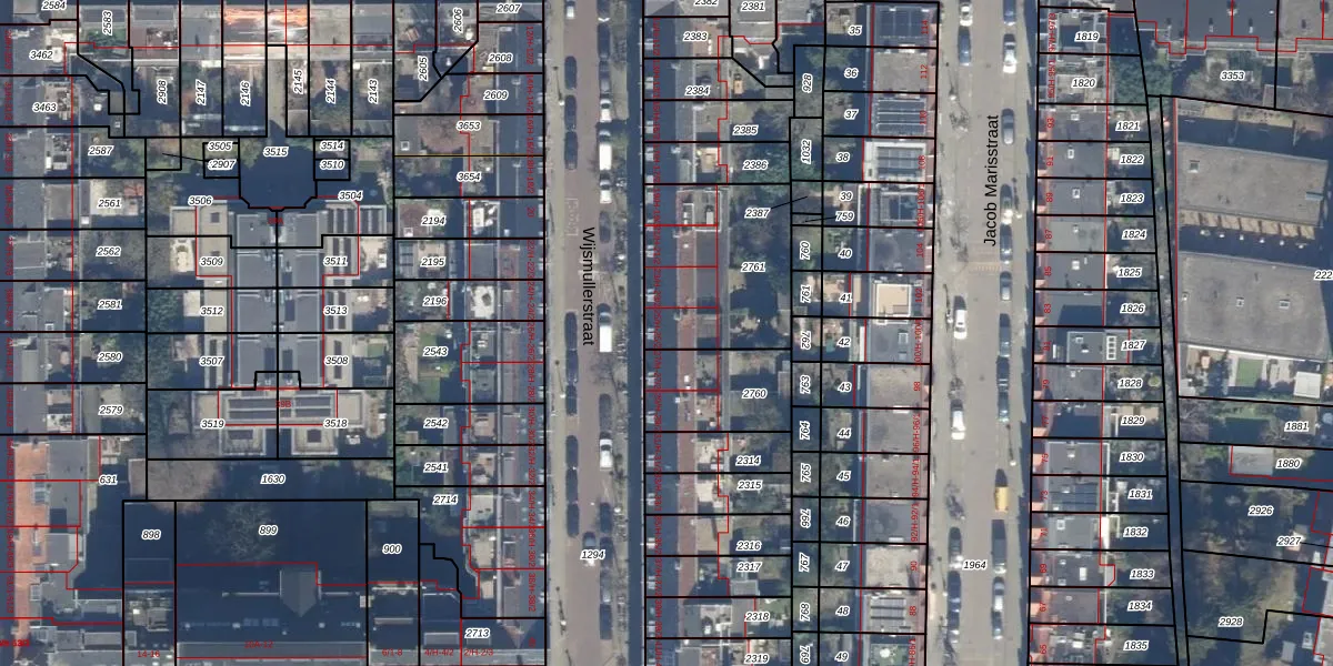 Het perceel waarop Wijsmullerstraat 25-2 staat heeft een oppervlakte van 548 m². Dit is een groot perceel. De perceeloppervlakte wordt geregistreerd door het Kadaster. Gedetailleerde informatie over de maten van dit perceel kunt u vinden in het rapport Kadastrale kaart met maatvoering van Wijsmullerstraat 25-2.